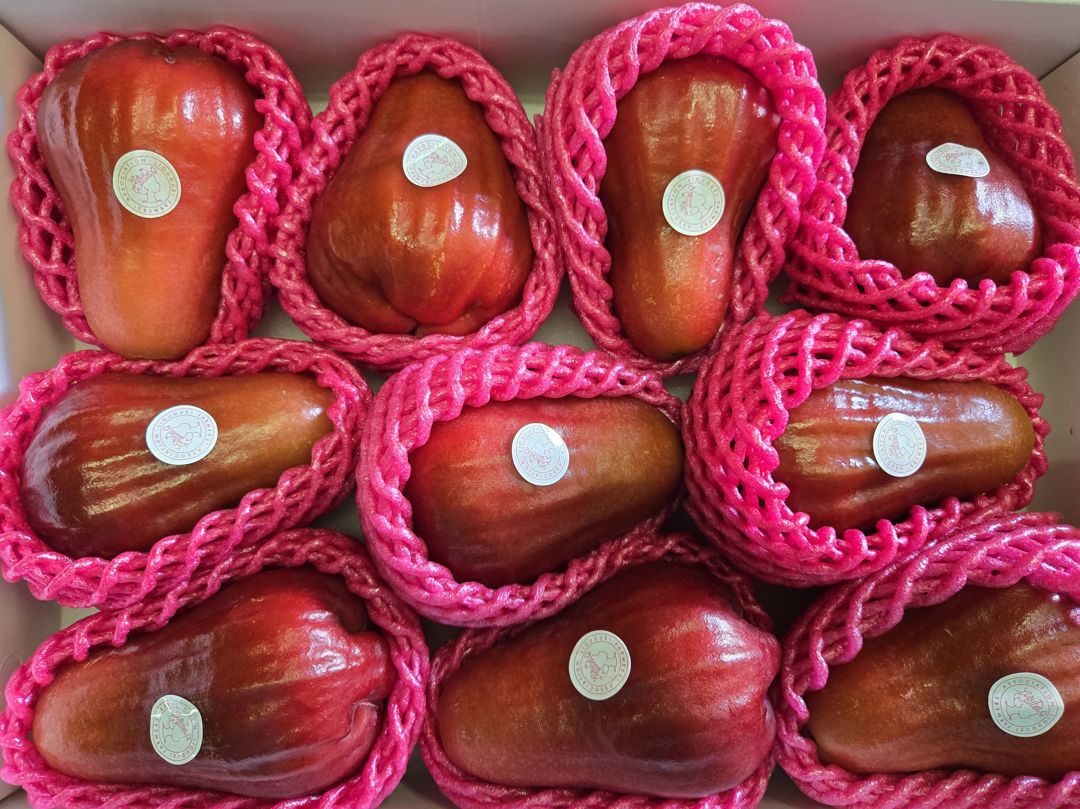 黑糖芭比蓮霧果形碩大,色澤紅潤,果肉香脆多汁,甜蜜中帶清爽,由本會嚴選品質,搭配『南果美眉手提禮盒』,為年節送禮之首選。